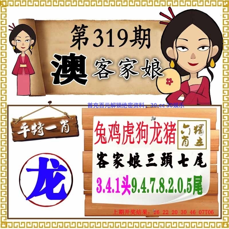 | 319期⑦肖 | 鸡虎兔猪鼠龙羊 | 开:鸡45中 |