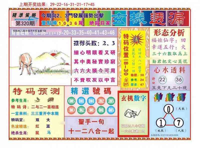 | 322期⑦码 | 01 38 06 10 44 36 29 | 开:發00中 |