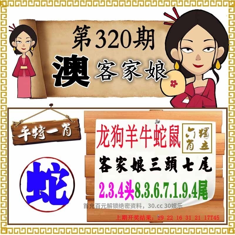 | 320期⑦肖 | 猪羊鼠兔蛇龙虎 | 开:虎28中 |